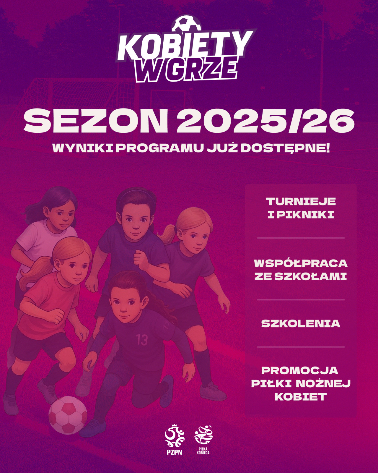 Zachęcamy do śledzenia efektów realizowanych projektów oraz kolejnych działań podejmowanych w ramach programu. Dziękujemy wszystkim wnioskodawcom za zaangażowanie i pracę na rzecz rozwoju kobiecej piłki nożnej w Polsce.