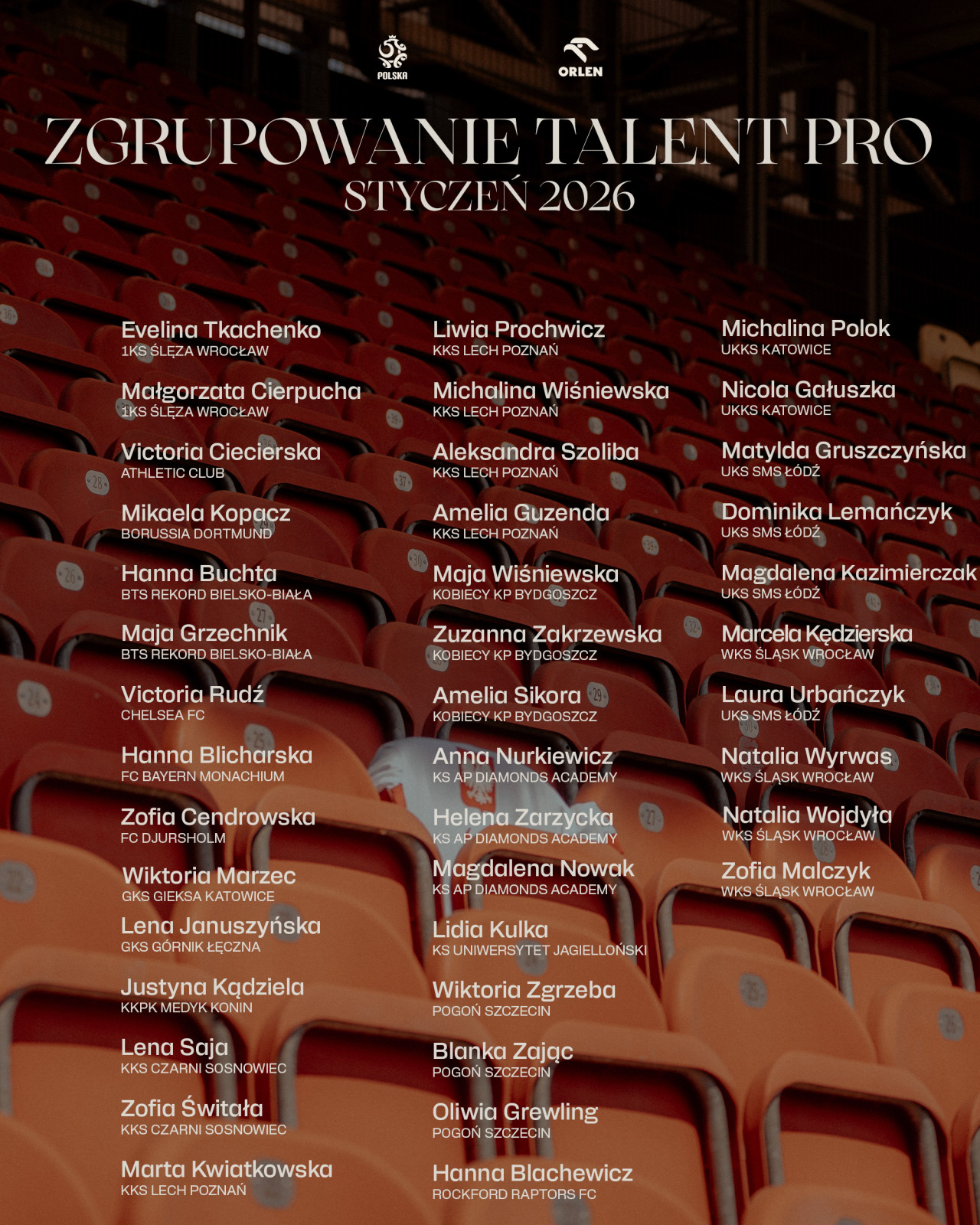 AktualnościFederacja Powołania na Talent Pro kobiet w Turcji 22 / 12 / 25 Autor: PZPN Poniżej przedstawiamy listę powołanych zawodniczek na konsultację szkoleniową Talent Pro w Turcji. Zgrupowanie rozpocznie się 16 stycznia 2026 roku w Słubicach.