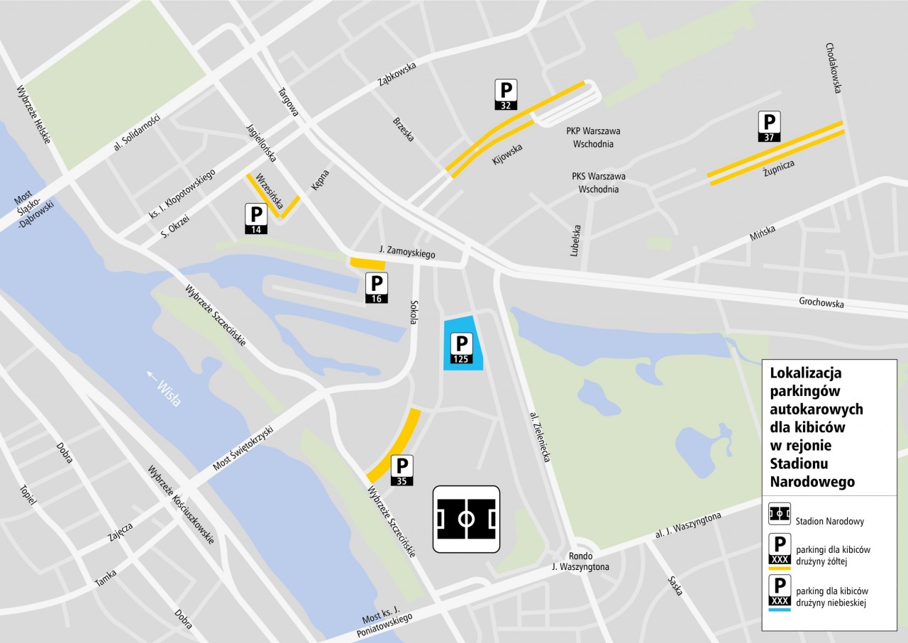 - Informacja dla kibiców o umiejscowieniu parkingu, sposobie dojścia na Stadion i do autokaru